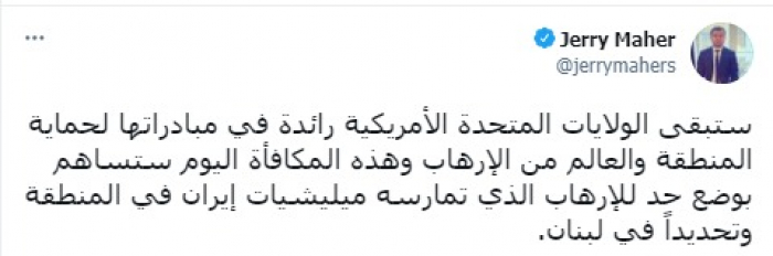 جيري ماهر: أمريكا رائدة في مواجهة إرهاب إيران بالمنطقة