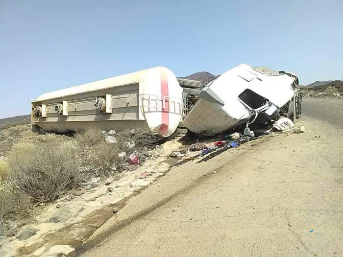 انقلبت قاطرة وقود اليوم الثلاثاء، على الطريق الرابط بين العاصمة عدن ومحافظة حضرموت، بمرتفعات جبال العرقوب الواقعة في محافظة أبين.