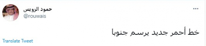وقال في تغريدة عبر "تويتر" رصدها "المشهد العربي": "خط أحمر جديد يرسم جنوبًا".
