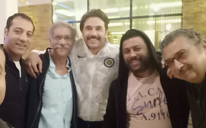 وظهر خلال الصورة مع الفنان محمد جمعة، الفنان أحمد عز وماجد الكدواني وسيد رجب.