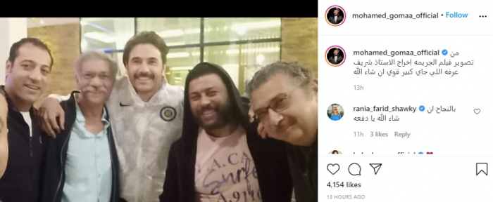 ونشر محمد جمعة صورة عبر حسابه الرسمي على "إنستجرام" وعلق عليها: "من تصوير فيلم الجريمة إخراج الأستاذ شريف عرفة اللي جاي كبير قوي إن شاء الله".