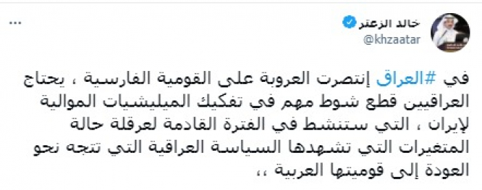 الزعتر: العروبة تنتصر على القومية الفارسية في العراق