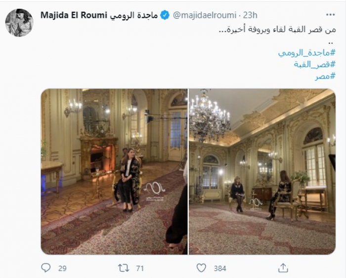 وكتبت ماجدة، عبر حسابها على تويتر: "من قصر القبة لقاء وبروفة أخيرة .. ماجدة الرومي.. قصر القبة".