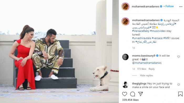 ونشر "رمضان"، صورة تجمعه بأورفاشي عبر "إنستجرام"، وعلق: "النجمة الهندية أورفاشي راوتيلا مفاجئة أغنيتي القادمة ڤيرساتشي بيبي".