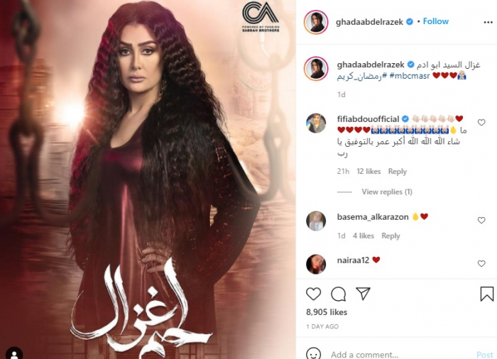 ونشرت غادة، صورة للشخصية التي تقدمها في المسلسل، عبر حسابها على موقع "إنستجرام"، وعلّقت: "غزال السيد أبو آدم".