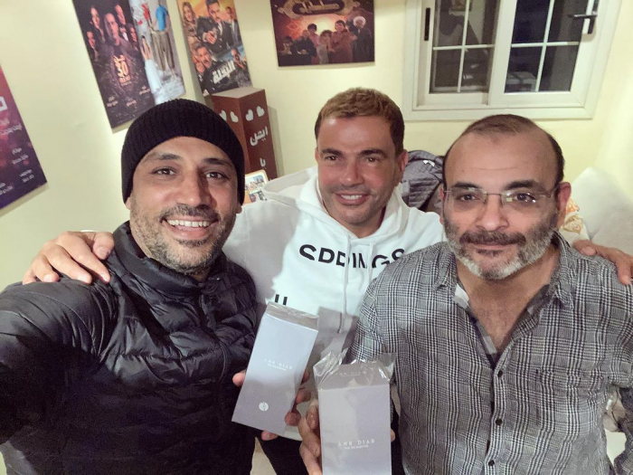 وظهر أيمن بهجت قمر ومحمد يحيي في إحدى الصور وهم يمسكان بعطر عمرو دياب الجديد، في إشارة واضحة إلى أن الهضبة قد أهداه لهم.