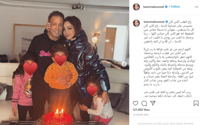 شاركت الفنانة المغربية بسمة بوسيل، جمهورها ومتابعي حسابها الرسمي على موقع انستجرام، بصورتين لوالدها، معلنة رحيله.