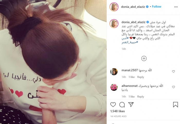 وكتبت دنيا، عبر حسابها على إنستجرام: "أول مرة مش معاكي في عيد ميلادك.. بس أكيد انتي عند الحنان المنان أسعد.. وأكيد أنا، لأني مع البشر بدونك اتعس.. ربنا يجمعنا قريبا.. يا كل اللي راح واللي جاي.. أمي، حبيبة العمر".