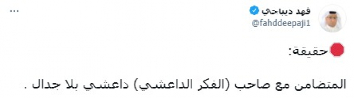 شدد المحلل السياسي السعودي فهد ديباجي على أن المتضامنين مع الفكر الداعشي المتطرف، عناصر داعشية.