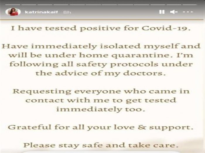 كشفت النجمة الهندية كاترينا كيف عن إصابتها بفيروس كورونا (كوفيد-19)، من خلال حسابها بموقع "إنستجرام".