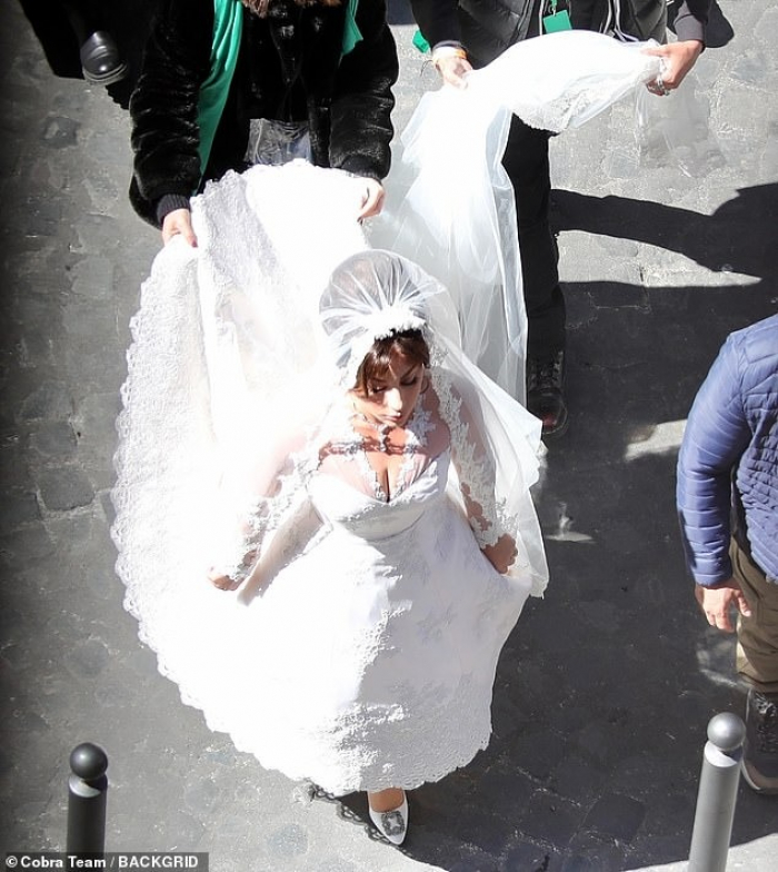 ظهرت النجمة العالمية ليدي جاجا في فستان زفاف أبيض مذهل، وذلك اثناء تصوير فيلم سيرة ذاتية House Of Gucci في روما ، إيطاليا ، وبدت الممثلة البالغة من العمر 35 عامًا مذهلة عندما تحولت إلى شخصية "الأرملة السوداء" باتريزيا ريجياني وهي تصور حفل زفافها على ماوريتسيو جوتشي، الذي يؤدي دوره آدم درايفر.