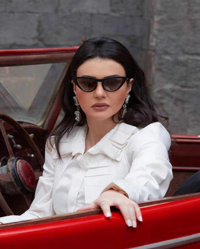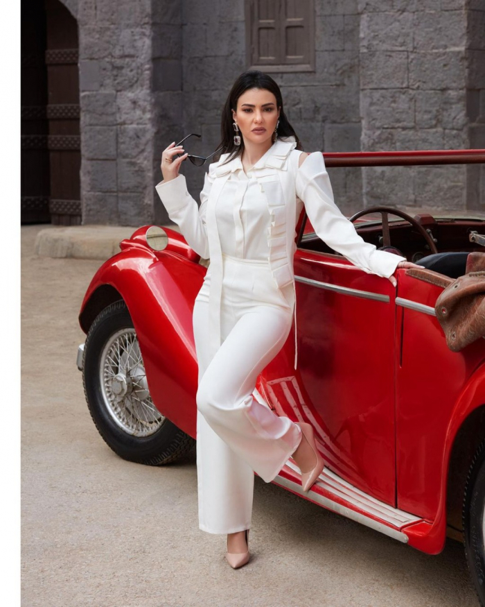 دينا فؤاد تتألق بالأبيض في جلسة تصوير جديدة