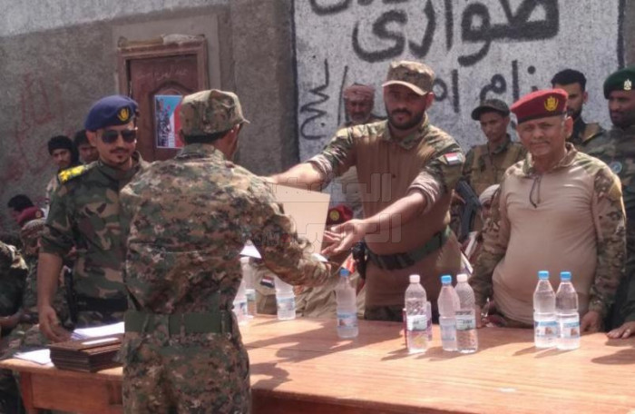 شهد معسكر الشهيد أبو اليمامة بمنطقة اللحوم في مديرية تبن بمحافظة لحج، اليوم الأحد، تخرج الدفعة السادسة من قوات الحزام الأمني وهي دفعة الشهيد محمد صالح العولقي.