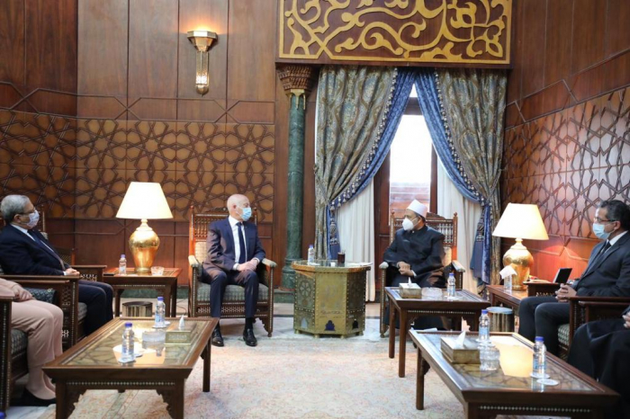 التقى الإمام الأكبر أ.د أحمد الطيب، شيخ الأزهر الشريف، الرئيس قيس سعَيّد، رئيس الجمهورية التونسية، بمقر مشيخة الأزهر ظهر اليوم الأحد، للتباحث حول أبرز قضايا العالم العربي والإسلامي، وأوجه التعاون بين الأزهر الشريف والجمهورية التونسية في المجالات العلمية والثقافية.