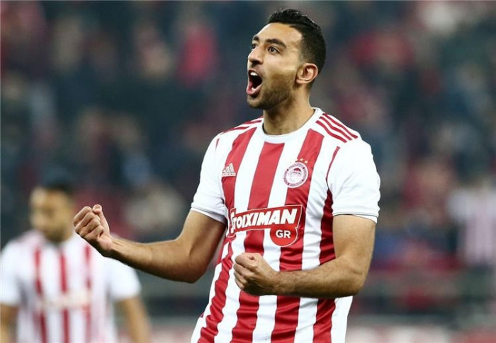 ساند أحمد حسن كوكا، مهاجم أولمبياكوس اليوناني، محمود حسن تريزيجيه، لاعب استون فيلا الإنجليزي والمنتخب الوطني، بعد تعرضه للإصابة بقطع في الرباط الصليبي في مباراة فريقه أمام ليفربول بالبريميرليج.