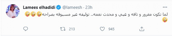 علقت الاعلامية المصرية لميس الحديدي على أزمة زوجها الإعلامي عمرو أديب مع الفنان محمد رمضان، وكتبت عبر حسابها على موقع التدوينات الفصيرة تويتر: «لما تكون مغرور وتافه وغبي ومحدث نعمة، توليفه غير مسبوقة بصراحة».