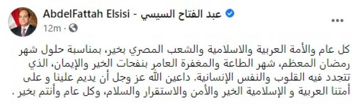 الرئيس المصري مهنئا برمضان: شهر الطاعة والمغفرة