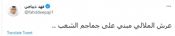 وقال في تغريدة عبر "تويتر" رصدها "المشهد العربي": "عرش الملالي مبني علی جماجم الشعب".