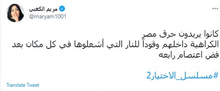 قالت الكاتبة والإعلامية مريم الكعبي، اليوم، إن جماعة الإخوان كانت تريد حرق مصر.