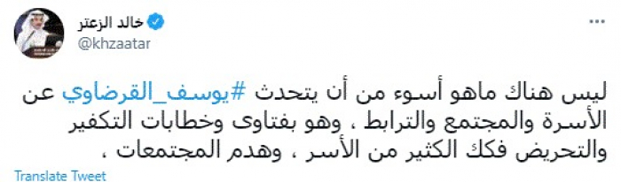 الزعتر مُهاجمًا القرضاوي: يتحدث عن الترابط رغم أنه تسبب في هدم المجتمعات