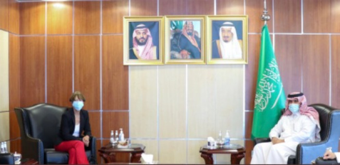 طرح سفير المملكة العربية السعودية، محمد بن سعيد آل جابر، في اجتماع اليوم الثلاثاء، على سفيرة ألمانيا لدى اليمن، كارولا هولتكيمبر، أبعاد مبادرة المملكة للسلام.