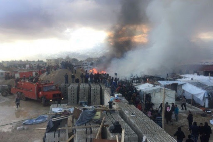 مصرع رضيع وإصابة آخرين في حريق مخيم لاجئين السوريين شمال لبنان