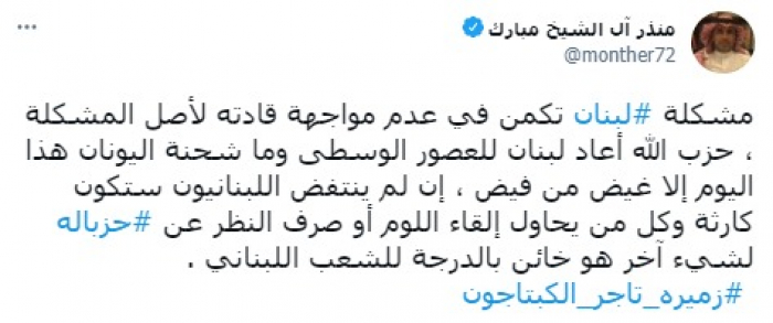 مدون سعودي: حزب الله أعاد لبنان إلى العصور الوسطى