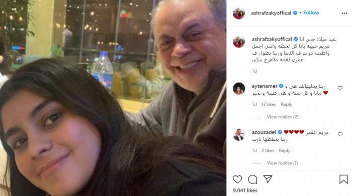 احتفل الفنان أشرف زكى، بعيد ميلاد نجلته مريم، من خلال نشر صورة تجمعهما عبر حسابه بموقع "إنستجرام".