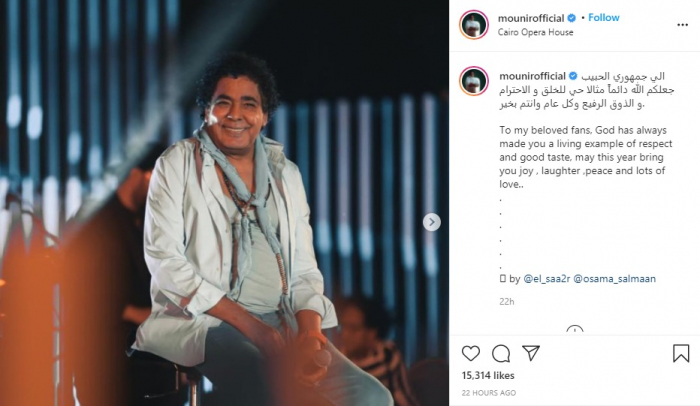 ونشر "منير"، صورًا من الحفل عبر حسابه بـ"إنستجرام"، وعلق: "إلى جمهوري الحبيب جعلكم الله دائمًا مثالًا حيًا للخُلق والاحترام والذوق الرفيع وكل عام وانتم بخير".
