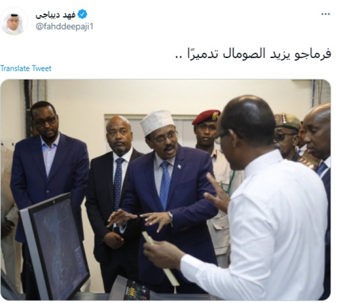 وقال في تغريدة عبر "تويتر" رصدها "المشهد العربي": "فرماجو يزيد الصومال تدميرًا".
