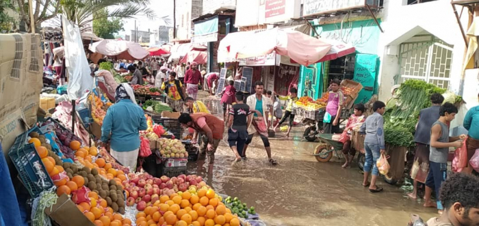 تسببت الأمطار الغزيرة التي هطلت صباح اليوم الأربعاء على مدينة جعار بمحافظة أبين، في غرق العديد من الشوارع بمياه الأمطار.