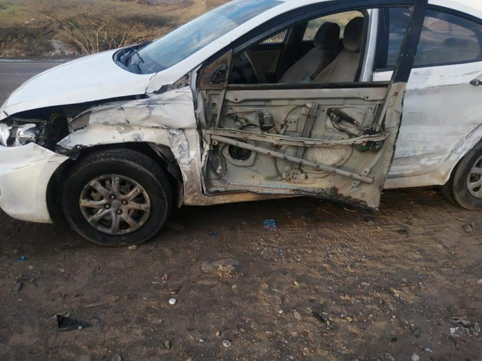 اصطدمت سيارة الكربي بشاحنة على الخط العام، قبل نقله مصابًا في ذراعه الأيمن إلى مستشفى ردفان العام.