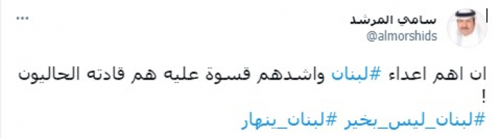اعتبر المحلل السياسي السعودي سامي المرشد، أن النظام الحاكم في لبنان من أشد أعدائه.