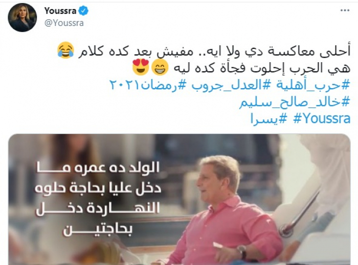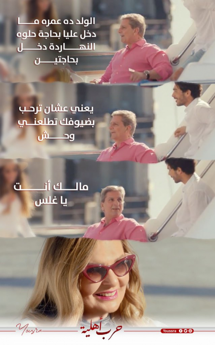 لترد يسرا قائلة: "أحلى معاكسة دي ولا إيه، مفيش بعد كده كلام، هي الحرب إحلوت فجأة كده ليه".