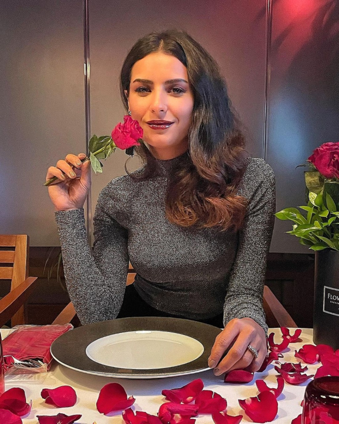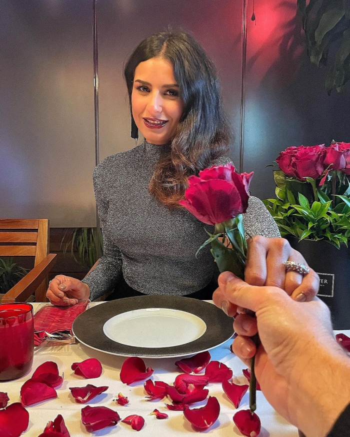 وظهرت "ريهام"، في الصور وهي تتناول عشاء رومانسي مع زوجها في أحد المطاعم، وعلقت على الصور قائلة: "ليلتي المفضلة".