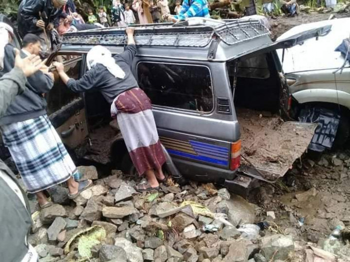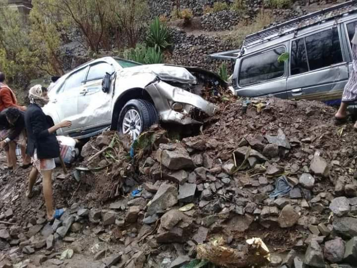 اجتاحت سيول جارفة، اليوم الجمعة، عزلة منطقة الصرم في محافظة تعز، جراء موجة أمطار غزيرة، وخلفت حالة دمار واسعة.