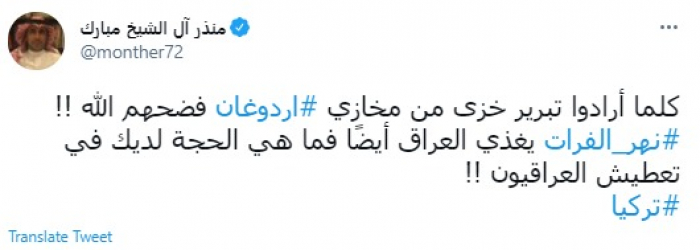 منذر آل الشيخ لـ الإخوان: ما حجتكم في تعطيش تركيا للعراقيين؟