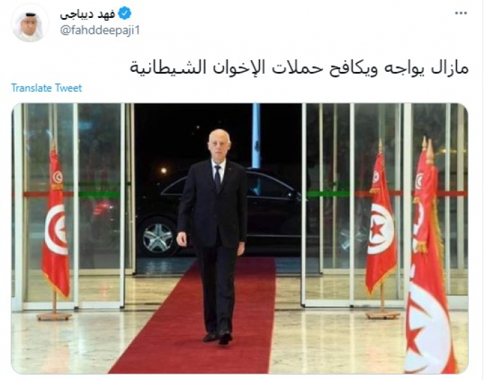أشاد المحلل السياسي السعودي فهد ديباجي، اليوم، بمكافحة الرئيس التونسي قيس سعيد، لحملات جماعة الإخوان الشيطانية.