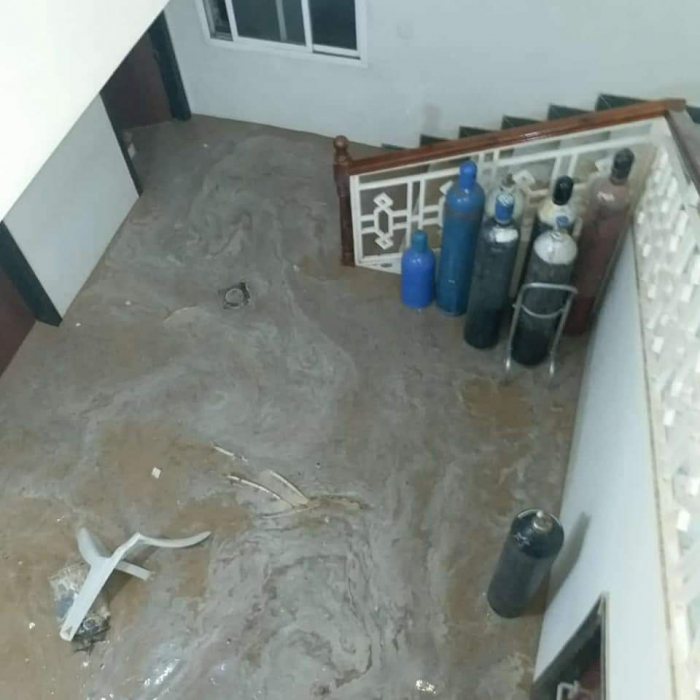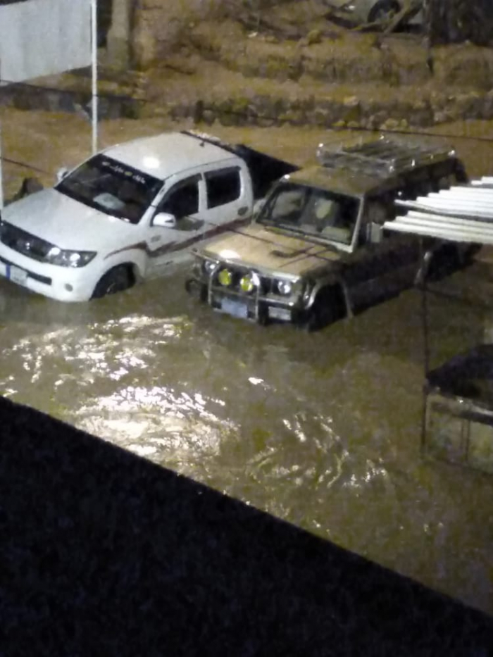 وتسببت السيول في غرق الطابق الأول بالكامل من مستوصف عيديد الطبي.