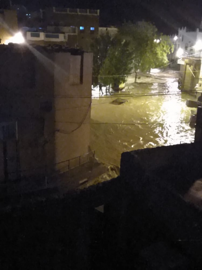 اجتاحت أمطار غزيرة وسيول، مساء اليوم الأحد، مدينة تريم بوادي حضرموت.