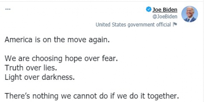 وتابع: "نحن نختار الأمل على الخوف، الحقيقة على الأكاذيب، النور فوق الظلام. لا يوجد شيء لا يمكننا فعله إذا فعلنا ذلك معًا".