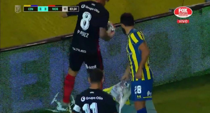 وكانت الطائرة الصغيرة تحمل علم روساريو سنترال، لكن أحد لاعبي روساريو أمسك بها وأسقطها أرضا.