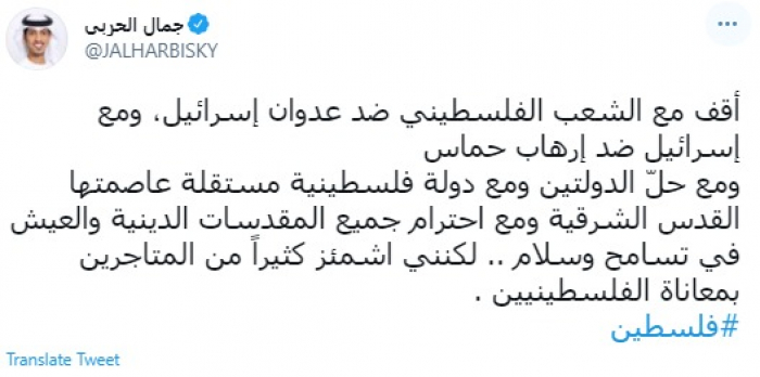 الحربي يُوجه رسالة نارية للمتاجرين بالقضية الفلسطينية