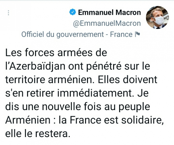 طالب الرئيس الفرنسي إيمانويل ماكرون القوات الأذربيجانية، بالانسحاب من المناطق الأرمينية بشكل فوري.