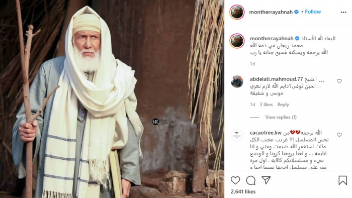 ونشر رياحنة، صورة للفنان الراحل عبر حسابه على موقع "إنستجرام"، وعلّق قائلا: "البقاء لله الأستاذ محمد ريحان في ذمة الله.. الله يرحمه ويسكنه فسيح جناته يا رب".