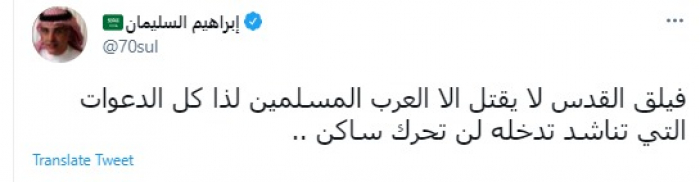 رد الكاتب السعودي إبراهيم السليمان، اليوم، على الدعوات التي تناشد فيلق القدس الإيراني للتدخل في القدس تحت ذريعة إنقاذ فلسطين من الاحتلال الإسرائيلي، وذلك عقب الأحداث الأخيرة التي يشهدها قطاع غزة تحت وطأة العدوان.