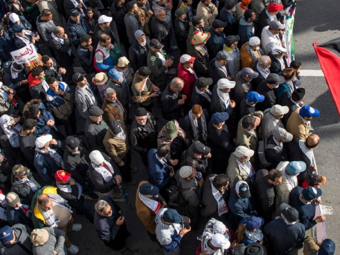 وردد المتظاهرون هتافات من بينها "فلسطين حرة حرة، والصهاينة برا برا"، و"لبيك يا أقصى" و"الشعب يريد تجريم التطبيع" و"يا للعار، يا للعار، باعوا الأقصى بالدولار" و"عالقدس رايحين شهداء بالملايين".