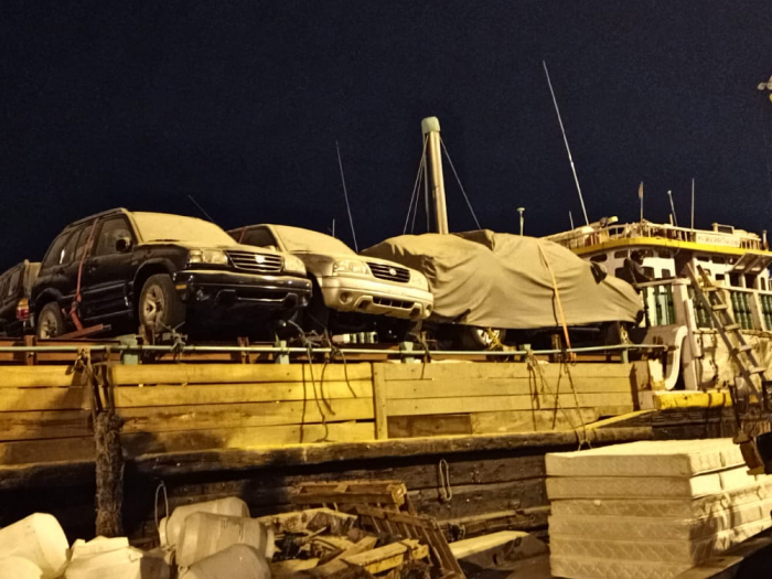 وجنح القارب، في أعقاب تسرب المياه إلى داخله، قبالة إحدى جزر الديمانيات العمانية، بحمولة من السيارات ومواد البناء، في رحلة تقليدية بين الإمارات والجزيرة.