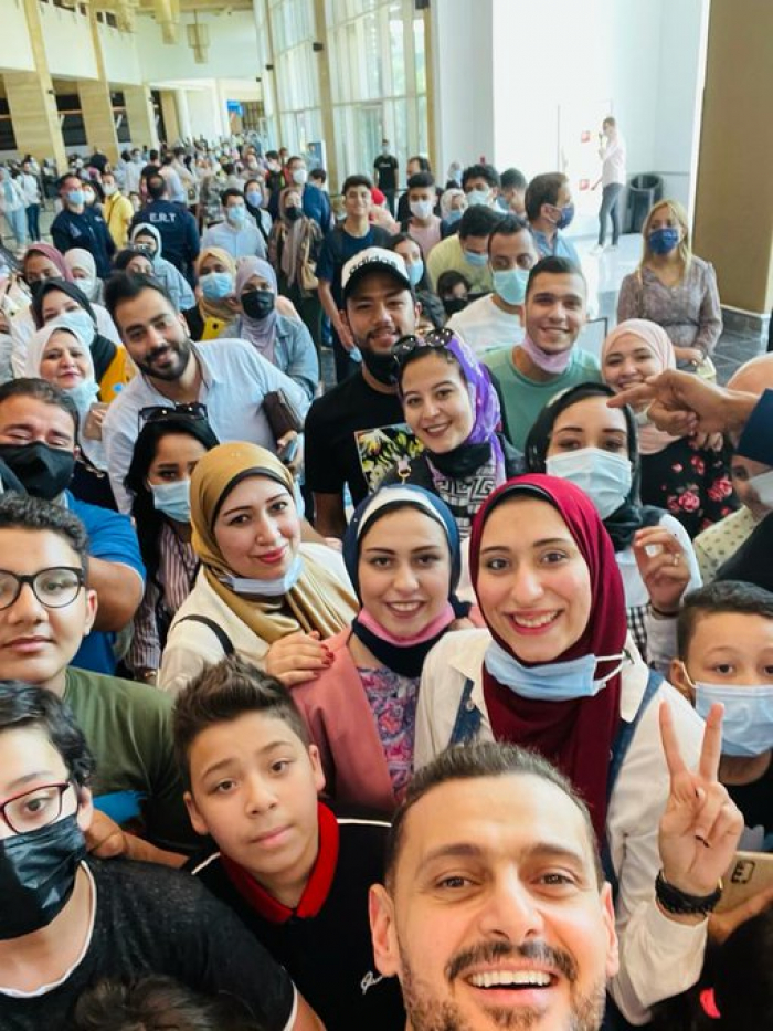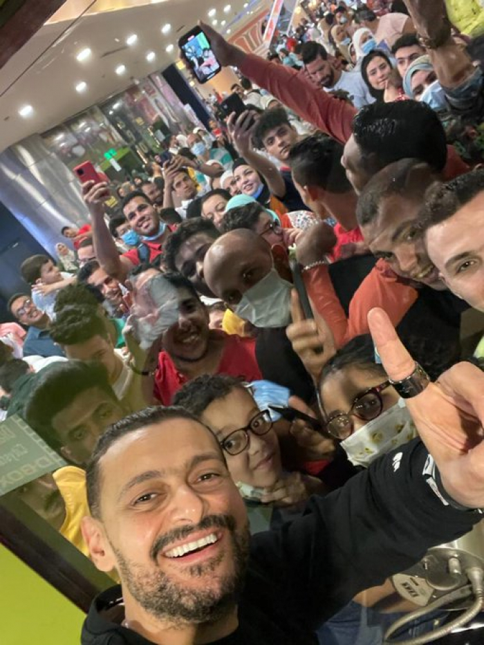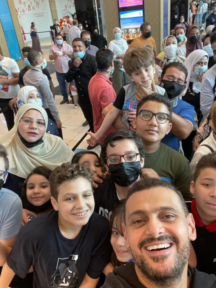 ظهر الفنان المصري رامز جلال مع جمهوره بالسينمات خلال حضوره حفلات خاصة بفيلمه الجديد"أحمد نوتردام".