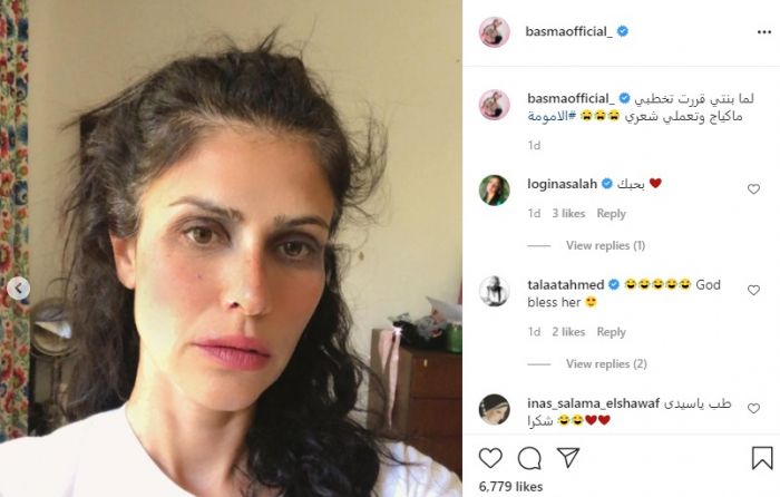 ونشرت بسمة، صورا لها عبر حسابها على إنستجرام، وعلقت: "لما بنتي قررت تحطلي مكياج، وتعملي شعري".